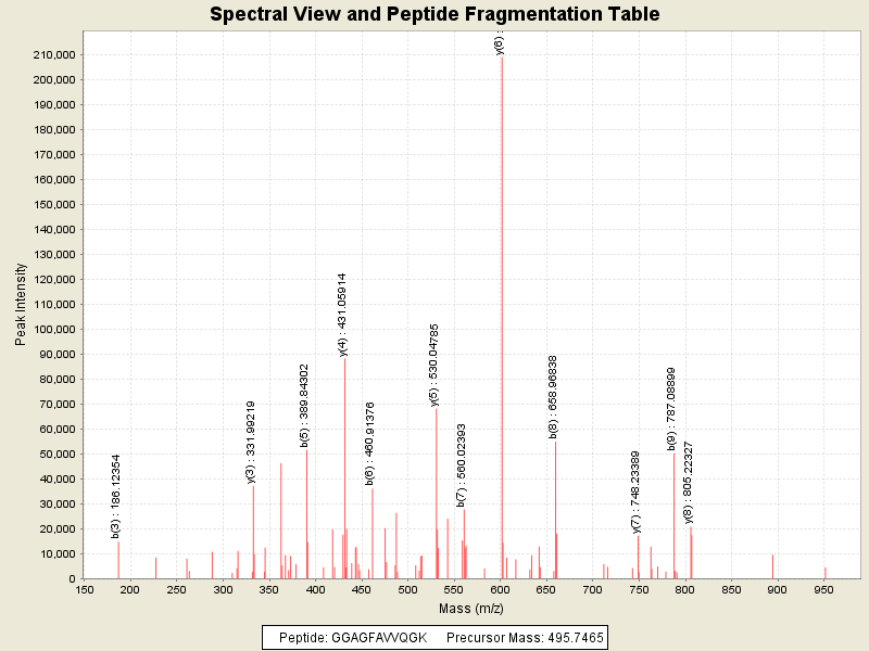Observed mass of peptide: 495.7465209961, (+2)