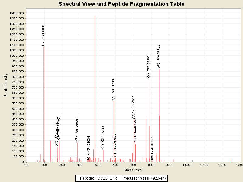 Observed intensity of peptide: 5543320.0