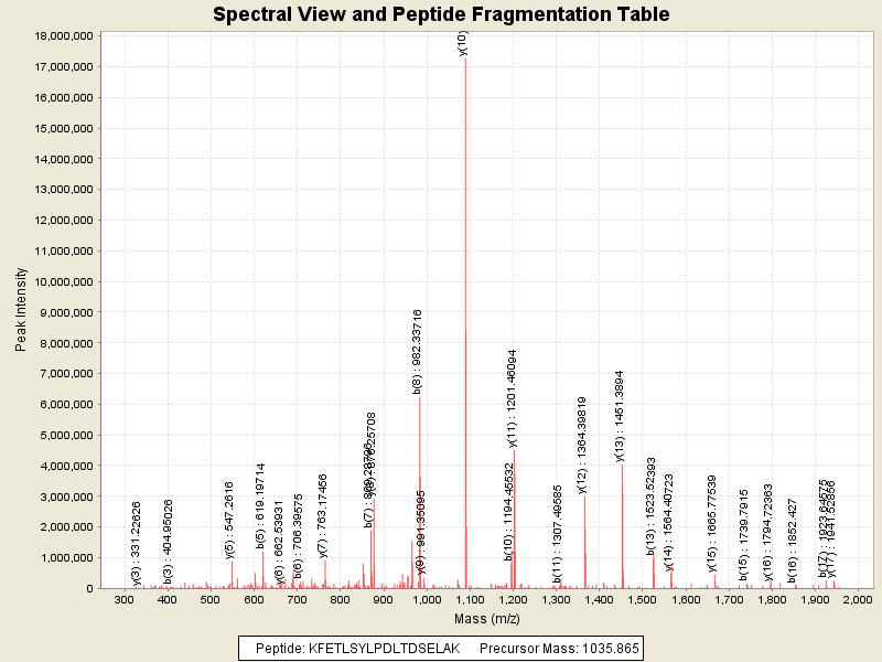 Observed intensity of peptide: 6.2306992E7