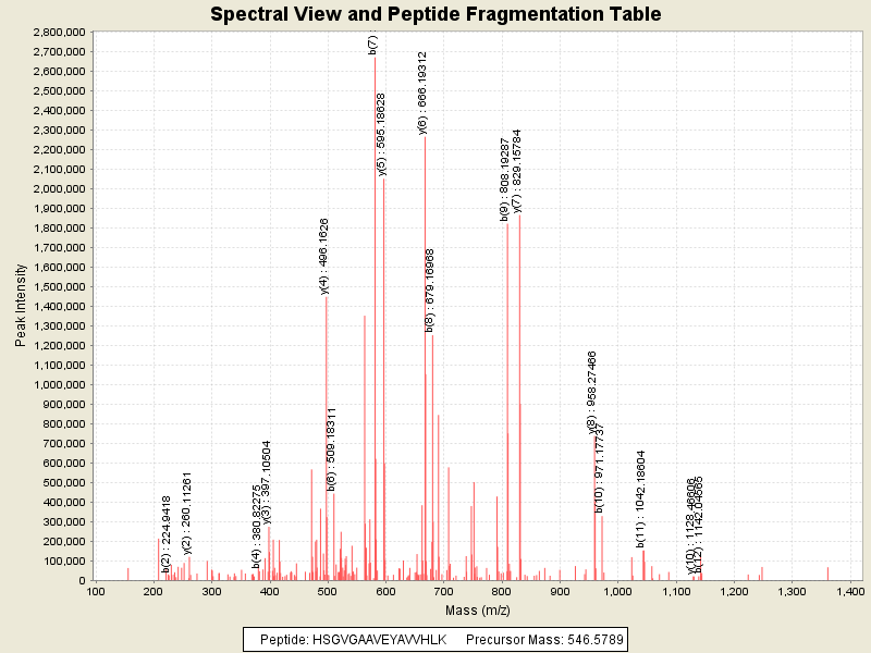 Observed intensity of peptide: 1.5073332E7