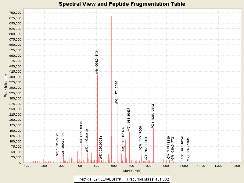 Observed intensity of peptide: 1714743.0