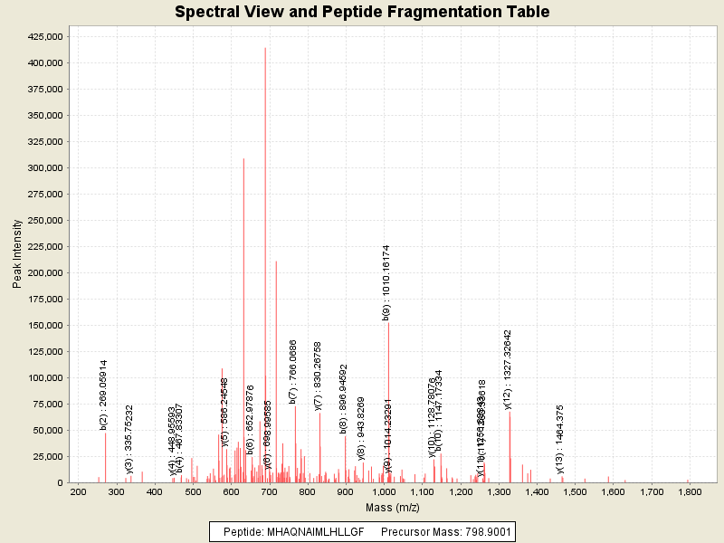 Observed intensity of peptide: 3091462.0