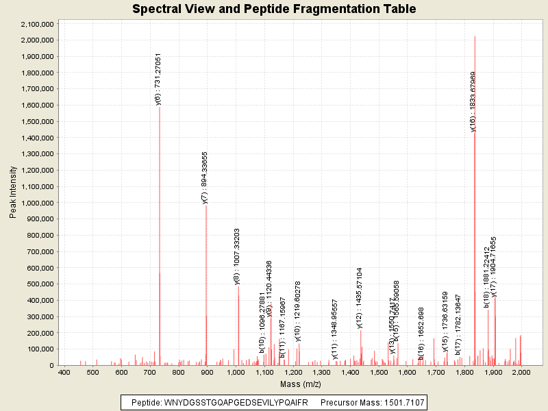 Observed intensity of peptide: 2.2233648E7