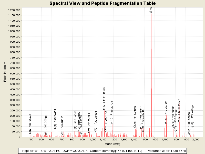Observed intensity of peptide: 5.6331296E7