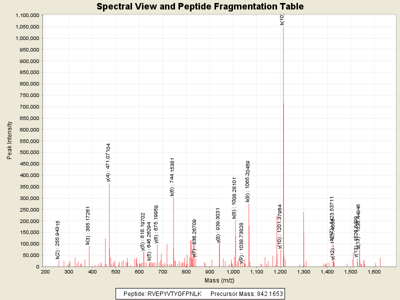 Observed intensity of peptide: 2.181288E7