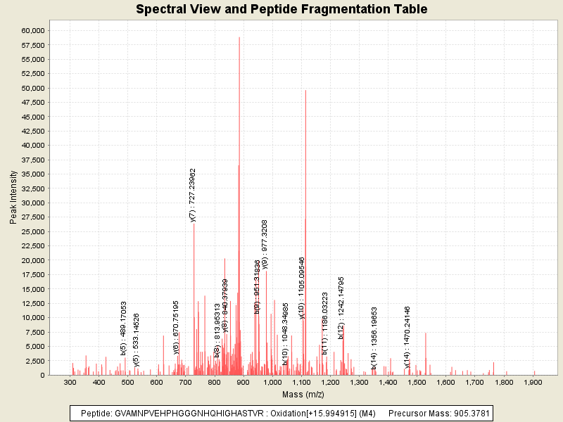 Observed intensity of peptide: 934484.0