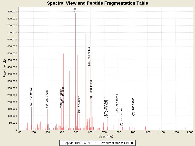 Observed intensity of peptide: 8741160.0