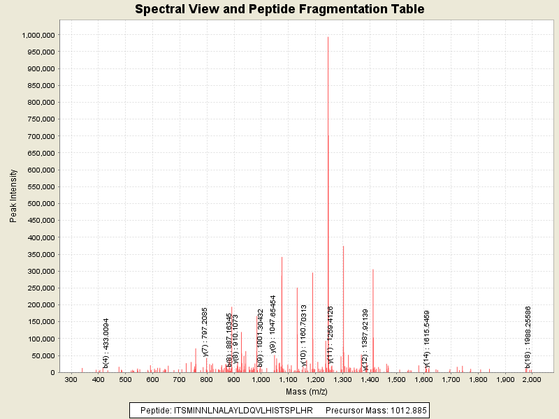 Observed mass of peptide: 1012.8850097656, (+3)