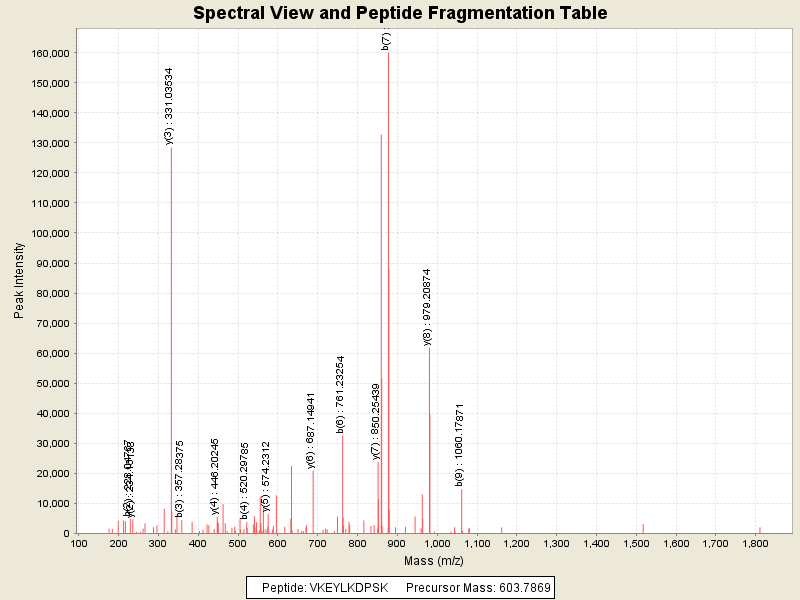 Observed intensity of peptide: 333335.0