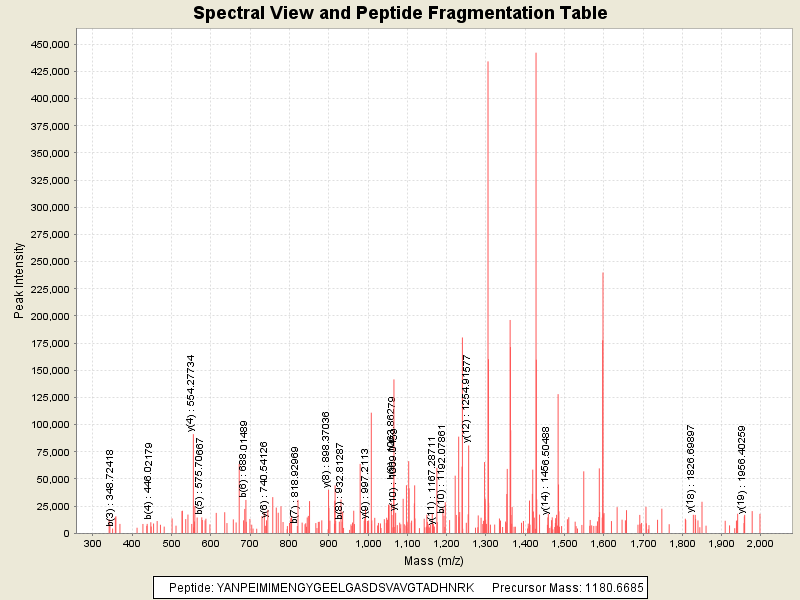 Observed intensity of peptide: 1.3692164E7