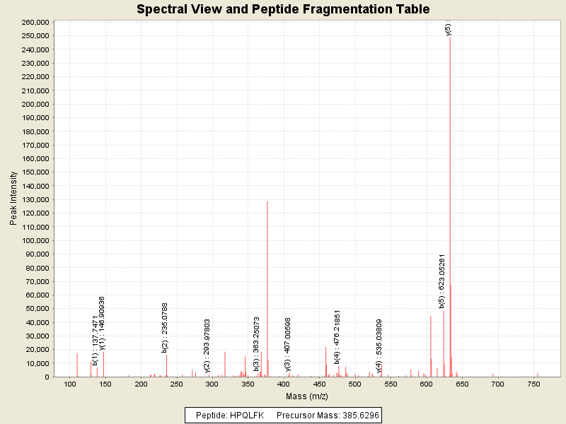 Observed intensity of peptide: 579515.0
