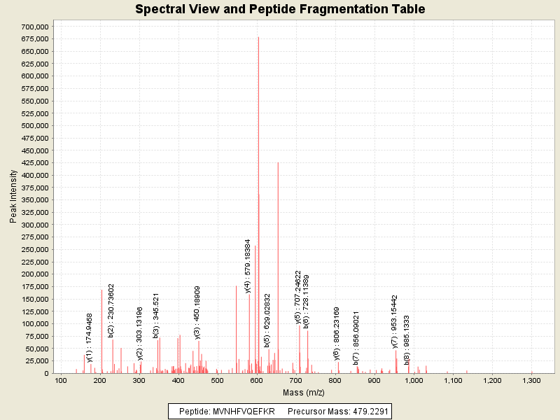 Observed intensity of peptide: 1913347.0