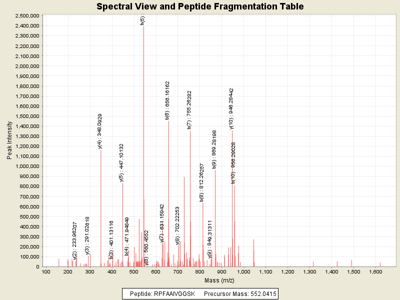 MS/MS Fragmentation of: RPFAAIVGGSK