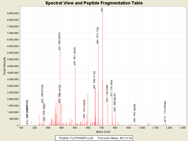 MS/MS Fragmentation of: FLKPSVAGFLLQK
