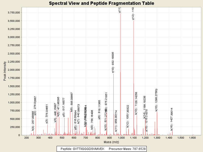 MS/MS Fragmentation of: GVTTIIGGGDSVAAVEK