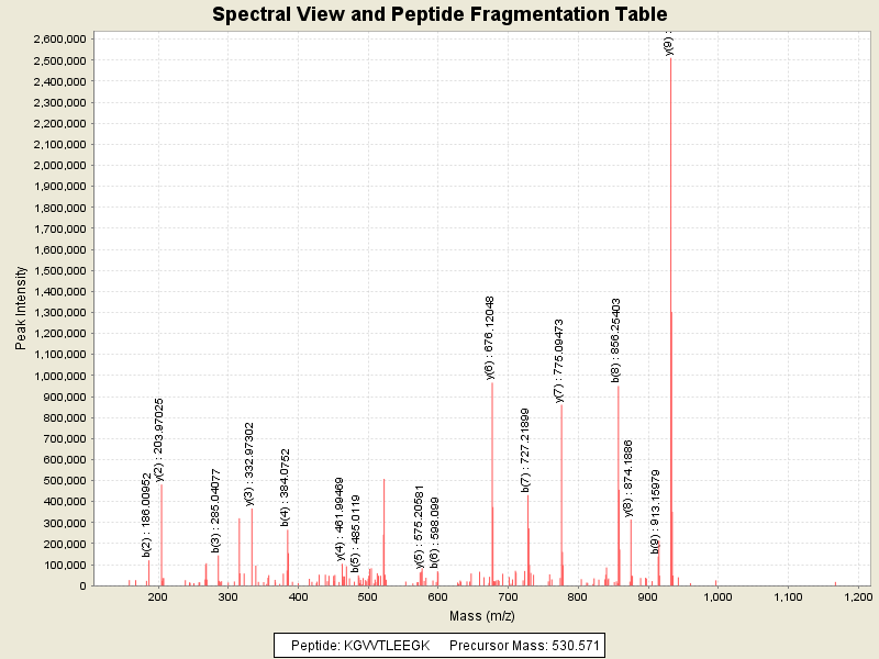 Observed intensity of peptide: 1.7358416E7