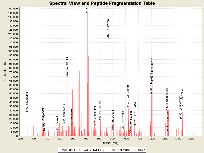 Observed intensity of peptide: 5370134.0