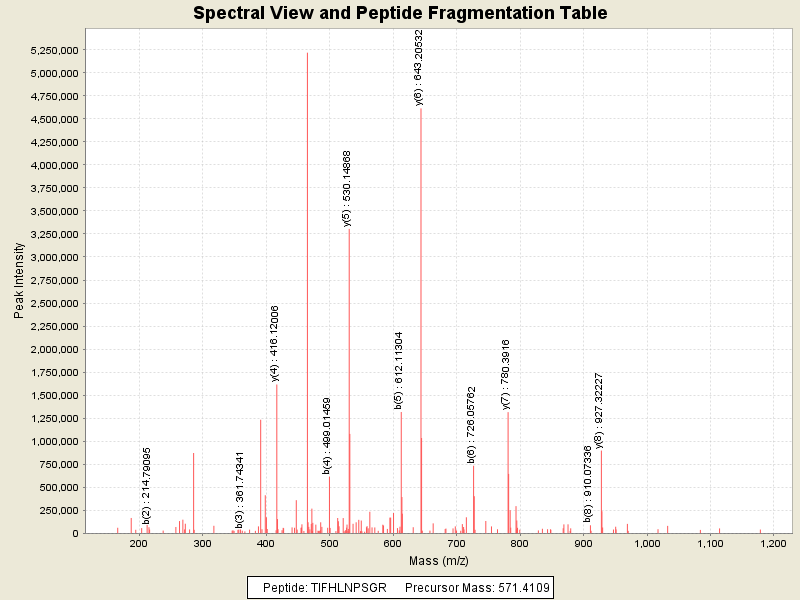 MS/MS Fragmentation of: TIFHLNPSGR