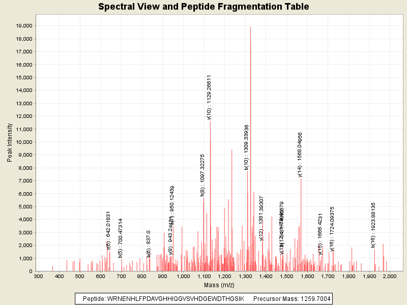 Observed intensity of peptide: 1266457.0