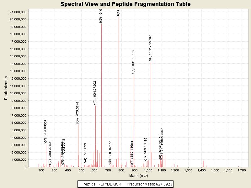 Observed intensity of peptide: 1.7003264E8