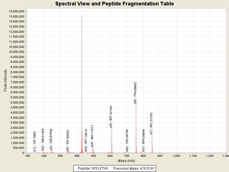 Observed intensity of peptide: 5.919828E7