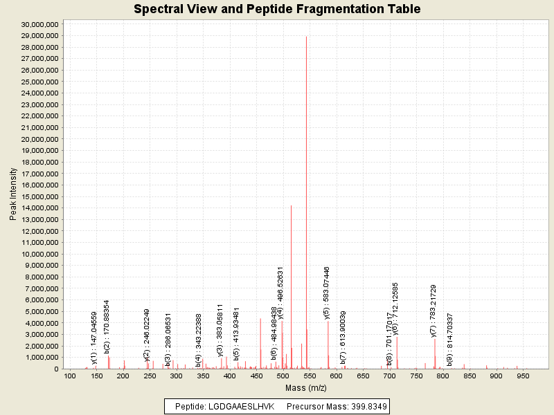Observed intensity of peptide: 5.2252848E7