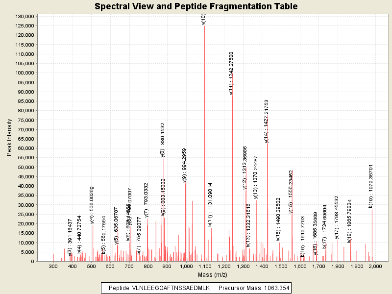 Observed mass of peptide: 1063.3540039062, (+2)