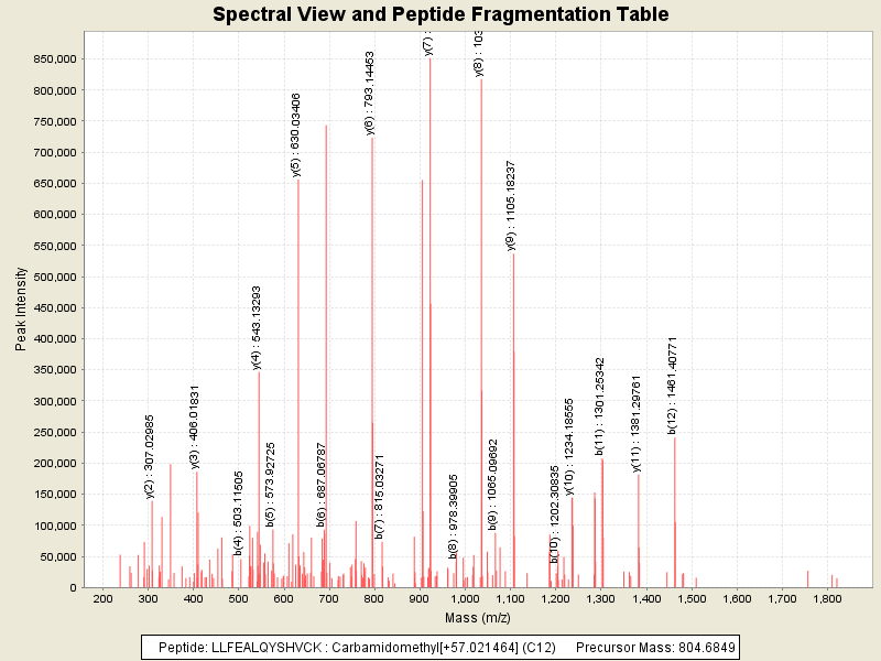 Observed intensity of peptide: 2.0906712E7
