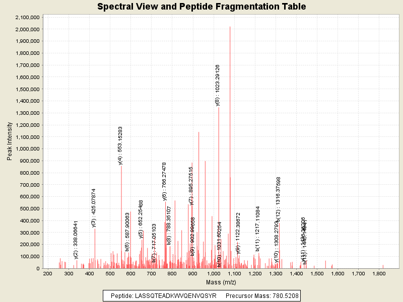 Observed intensity of peptide: 2.8641336E7