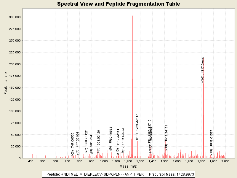 Observed intensity of peptide: 4383903.0