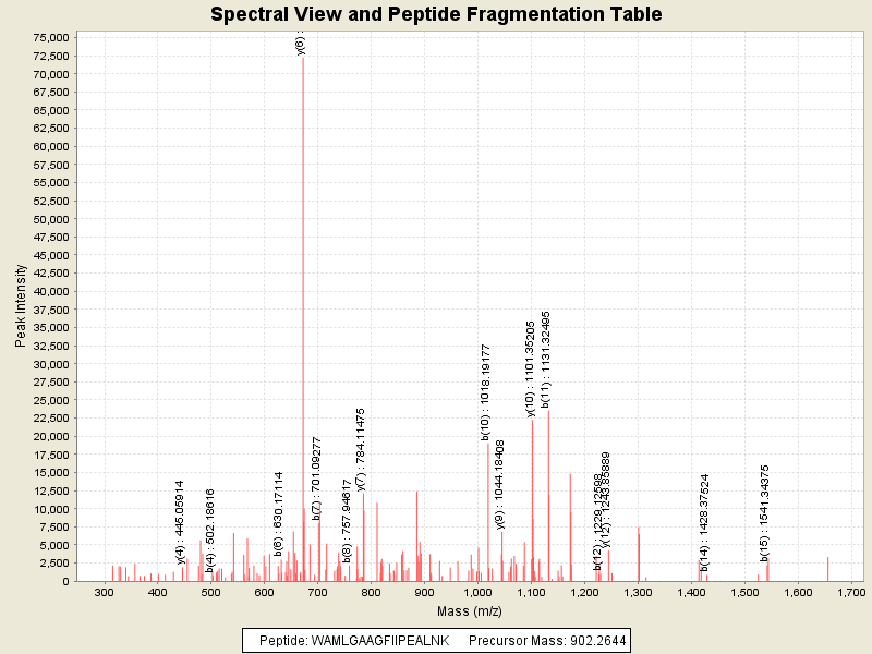 Observed mass of peptide: 902.2644042969, (+2)