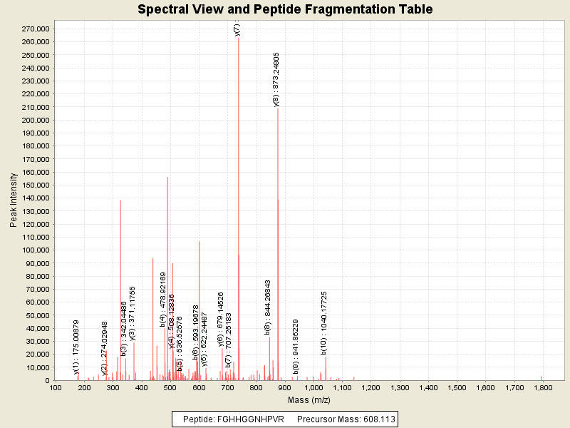 Observed intensity of peptide: 1804817.0