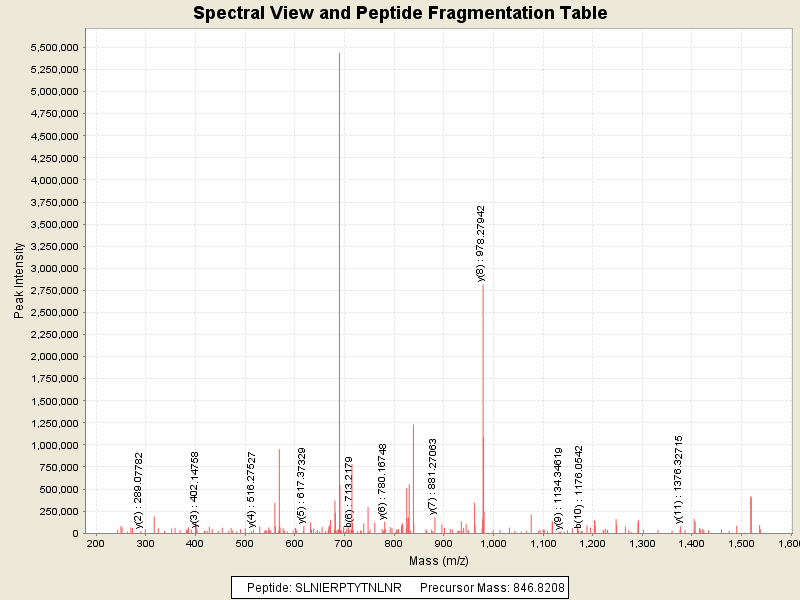 Observed intensity of peptide: 3.2085128E7